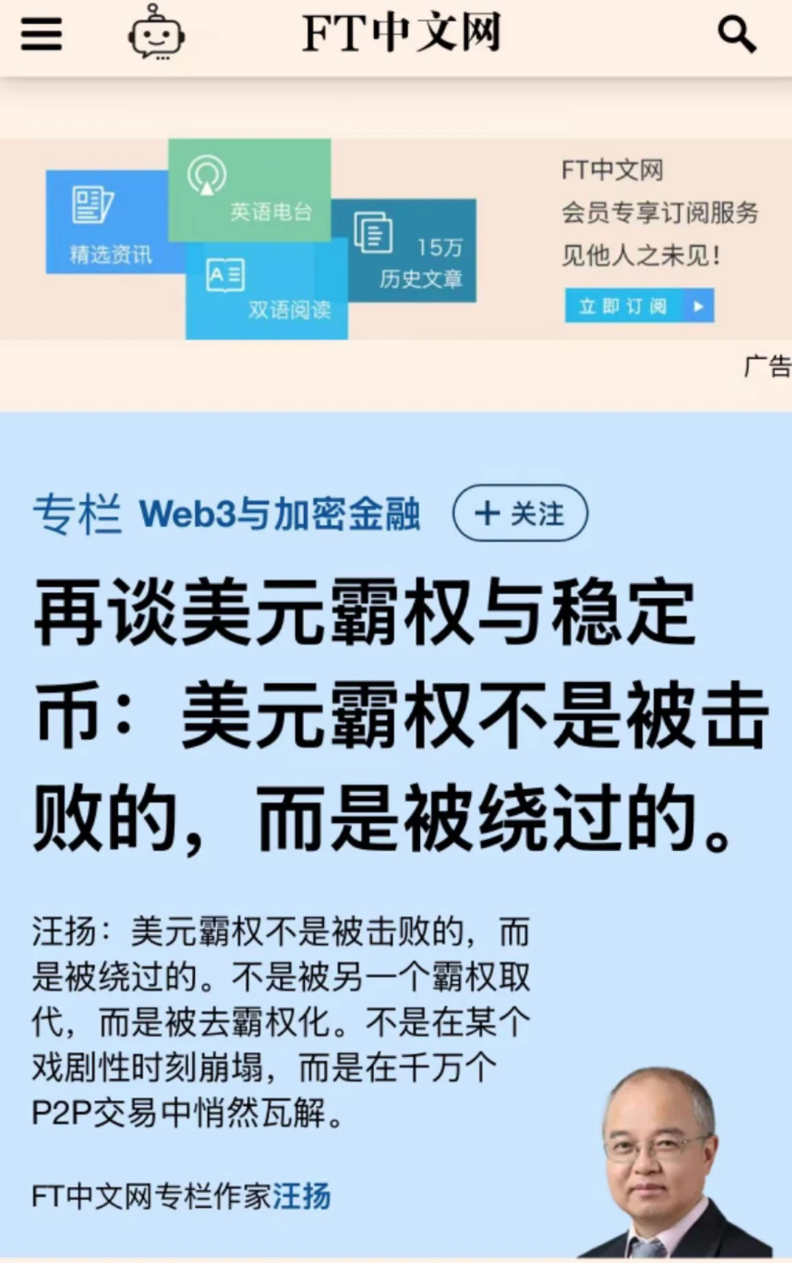 (作者汪扬为著名数学教授,香港科技大学副校长(2020-2025年),香港Web3协会首席科学顾问。本文仅代表作者观点。)